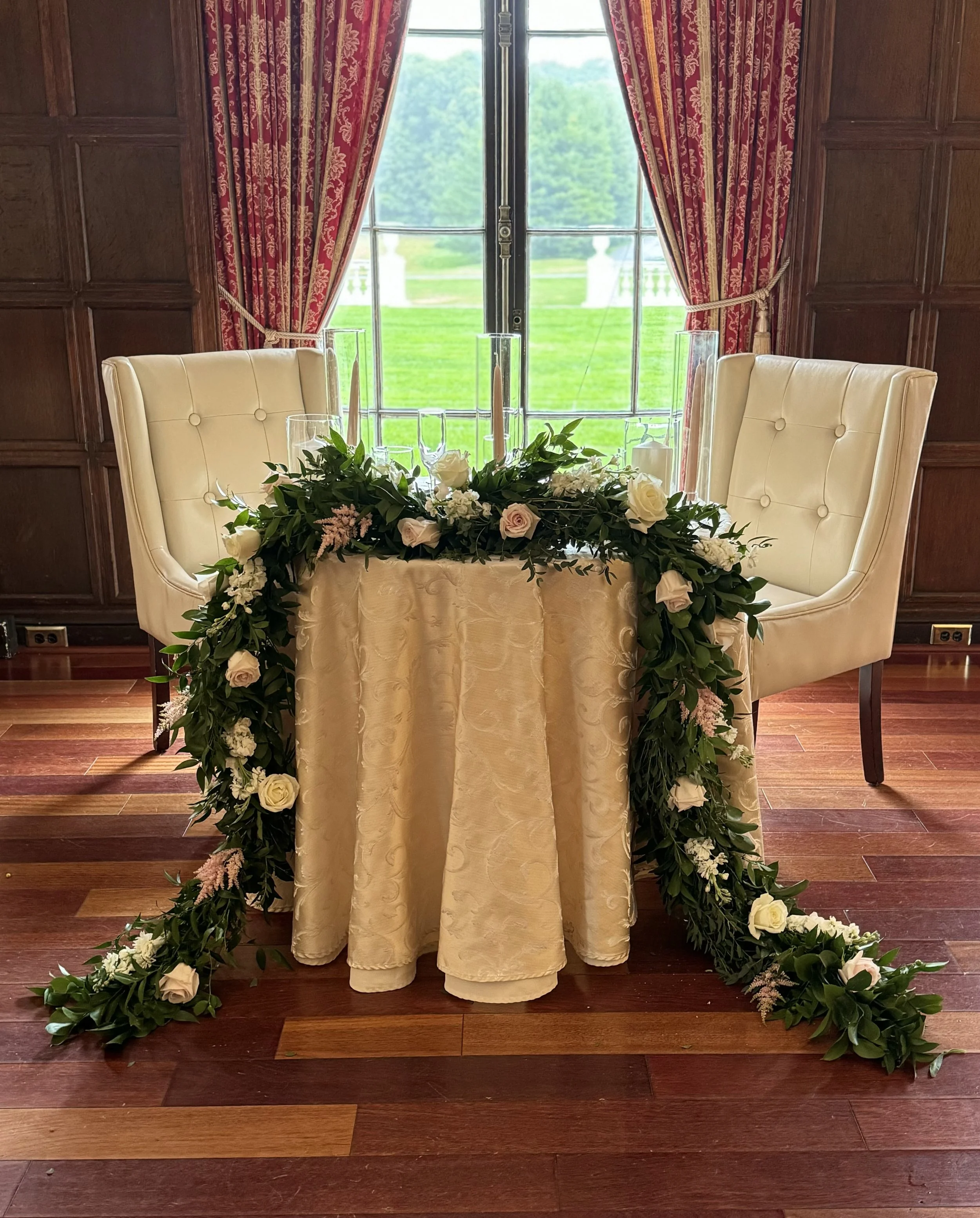 WEDDING WORK King’s Table at Seawanhaka Corinthian Yacht Club Tablescape at Centerport Yacht Club Bouquets Candleabra at Westbury Manor Entrance Table Arrangement Sweetheart Table at De Seversky Mansion Bridal Bouquet Ring Staircase at Water’s Edge